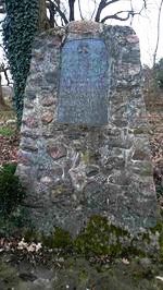 Auf dem Friedhof ein Denkmal für die Gefallenen des 1. Weltkriegs, Feldsteinpyramide mit eingelassener Namenstafel;