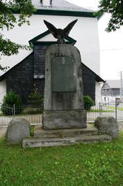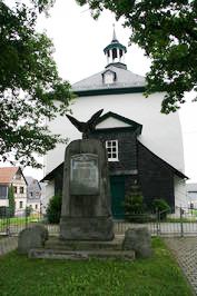 Stele mit aufgesetztem Adler an der ev.-luth. Kirche