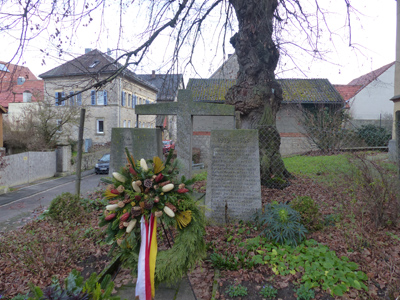 Im Kirchenzugang/-garten steht das Kriegerdenkmal. In der Mitte ein Steinkreuz, links und rechts daneben zwei Steinblöcke mit den Daten. Zwischen 2012 und 2022 wurde das zugewucherte Denkmal frei geschnitten und ist wieder zugänglich.