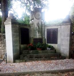 Vor dem Friedhof wurde ein Ehrenmal für die Gefallenen und Vermissten der beiden Weltkriege errichtet. Es besteht aus einer winkelig gesetzten Mauer, in der Mitte ein großes stilisiertes Kreuz mit einem Eisernen Kreuz in einem Lorbeerkranz. Darunter ein nach unten zeigendes Schwert, das ebenfalls mit Laub bedeckt ist. Am Fuße eine Inschrifttafel und an der linken Wand die Namen des 1. Weltkrieges und an der rechten die des 2. Weltkrieges. In diese wurden auch Angehörige von Heimatvertriebenen aufgenommen. Auf den Mauern am Ende jeweils ein Stahlhelm auf einem Lorbeerkranz.