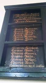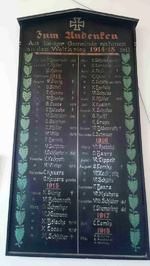 Denkmal für die Gefallenen des 1. Weltkriegs mit zusätzlicher Tafel für die Opfer des 2. Weltkriegs (ohne Namen), Gedenktafeln in der Kirche