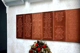 In der Abdankungshalle; Gedenktafeln an zwei Seiten