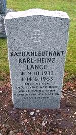Der Grabstein für den 1963 umgekommenen Kapitänleutnant Lange ist wahrscheinlich ein Gedenkstein, da „lost at sea“ vermisst auf See bedeutet. Weitere Informationen zu ihm aus dem Buch: Buch: Klaus Kropf, Jet-Geschwader im Aufbruch, VDM Heinz Nickel, Zweibrücken 2003 (kursiv gekennzeichnet) Zusätzliche Informationen in Blau vom Volksbund Deutsche Kriegsgräberfürsorge: www.volksbund.de/graebersuche