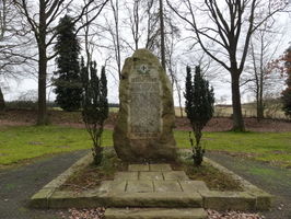 Neben dem Friedhof steht ein Gedenkstein zur Erinnerung an die Toten beider Weltkriege. Unter einem Eisernen Kreuz und Eichenlaub sowie den Jahreszahlen der Weltkriege sind die Namen aufgelistet.