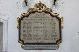 In der Kirche; Gedenktafel an der Wand (Die Namen sind identisch mit jenen vom Friedhof und am Parkplatz, Abweichungen in der