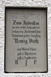 Zum Andenken an den in der Schlacht bei Sedan den Heldentod fürs Vaterland gestorbenen Jüngling (Name)