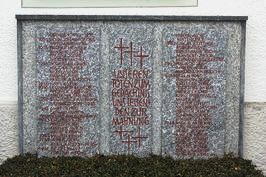 Im Friedhof: Denkmal an der Kirche und eine weitere Gedenktafel an der Kirchenwand (Die Namen vom 1. Weltkrieg sind identisch mit jenen von der Kirche und am Parkplatz, Abweichungen in der Schreibweise); zusätzlich Hinweise zu Soldaten von privaten Gedenksteinen