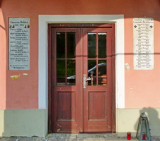 Gedenktafeln auf beiden Seiten des Eingangs der Dorfkapelle.