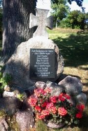 Unter der Dorflinde auf dem Kirchhof steht ein Feldstein, der mit einem Eisernen Kreuz (aus Stein) abgeschlossen wird. An diesem ist eine Tafel mit den Namen der Gefallenen der beiden Kriege angebracht.