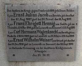 Das Gedenkschild für 1870/71 befindet sich in einem guten Zustand und ist zentral auf dem Friedhof von