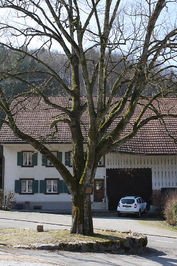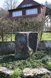 Münchwilen, Bezirk Laufenburg, Kanton Aargau, SchweizPLZ 4333 An der Dorfstraße, Nähe Ursulakapelle; beide nahe beieinander a) Tafel an der Friedenslinde; b) Tafel am Gedenkstein