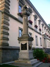 Vor dem Rathaus in Neusalza steht eine Stele für die Gefallenen von 1866/70-71.