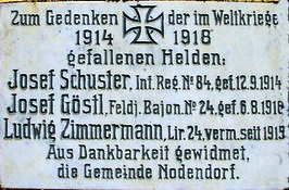 Zum Gedenken der im Weltkriege 1914 – 1918 gefallenen Helden: (Namen) Aus Dankbarkeit gewidmet, die Gemeinde Nodendorf.