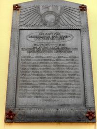 An der Front des ehemaligen kath. Gesellenheims an der Gerberstrasse, befindet sich eine verzierte Metalltafel für die in Südwestafrika (deutsche Kolonie von 1884-1918) stationierten Offenburger Soldaten. Entwurf: Alfred Kusche, Karlsruhe; Ausführung: Otto Müller, Karlsruhe.