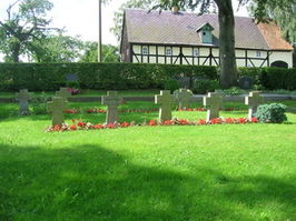 Auf dem örtlichen Friedhof befinden sich drei Einzelgräber (1. Weltkrieg) und ein kleines Gräberfeld mit neun Steinkreuzen (2. Weltkrieg).