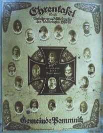 Tafel Ehrentafel für die Gefallene u. Mitkämpfer des Weltkrieges 1914-18 Es starben für Deutschland