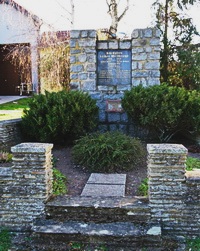 Aus Natursteinen gefügtes Denkmal am Dorfplatz.