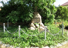 Auf einen Findling aufgesetzte Inschriftentafel im Ortskern.
