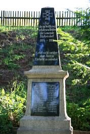 Stele für die Opfer des 1. Weltkrieges östlich der Paitzdorfer Straße, links daneben Gedenkstein für die Opfer des 2. Weltkrieges. (Gegenüber Lapidarium mit historischen Landesgrenzsteinen).