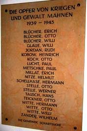 Tafel 2. Weltkrieg: Die Opfer von Krieg und Gewalt mahnen. 1939-1945 (Namen) Die Gemeinde Scharteucke