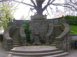 Vor dem Friedhofseingang am Kirchberg befindet sich das Denkmal. Ein Halbrondel ist erhöht angelegt und beidseits über Treppen zu erreichen. Oben finden sich vier Namens- und eine Widmungstafel für die Gefallenen des 1. Weltkriegs. Unten zwischen den Treppen steht eine Stele für die Toten von 1866/70/71.