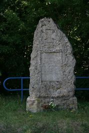 Stele unmittelbar neben der Dorfstraße (K 106) südlich der Kirche.
