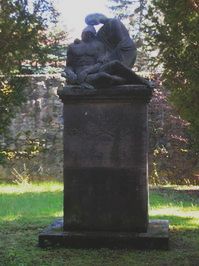 Steinquader, obenauf die Skulptur einer Frau mit sterbenden Krieger. Für die Gefallenen des
