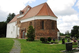 Scholitz, Gemeinde Schönwölkau, Landkreis Nordsachsen, SachsenPLZ 04509 Auf einen Naturstein aufgesetzte polierte Inschriftentafel neben dem Eingang der Ortskirche.