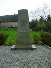 Ca. 2 m hoher heller Stein an welchem zwei Platten mit den Namen der Gefallenen des 1. und 2. Weltkriegs angebracht sind.