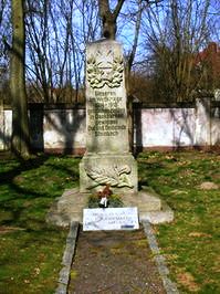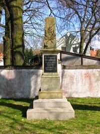Auf einer sich nach oben verjüngenden Treppenetagere stehendes Säulendenkmal mit Inschrift und den Namen der Opfer des Frankreichfeldzuges.