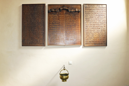 Im Eingangsbereich der Kirche sind drei Holztafeln angebracht.