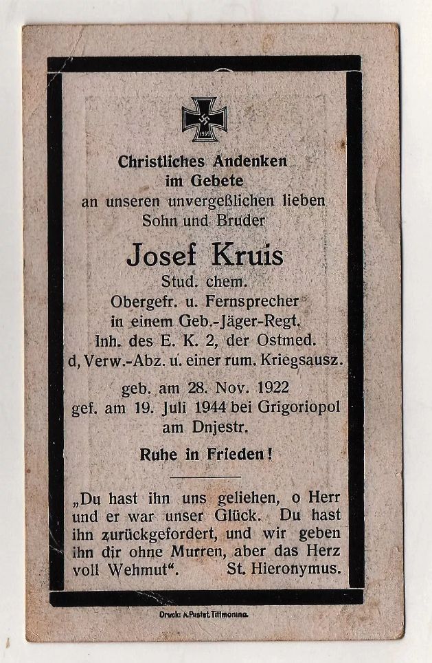 Stud. ehem. Obergefr. U. Fernsprecher . Inh. des E.K. 2, der Ostmed. Des Verw.-Abz. u. einer rum. Kriegsausz.