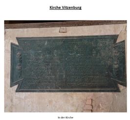 Tafel in der Kirche: AUS DER GEMEINDE VITZENBURG-PRETITZ GABEN FÜR KAISER UND REICH IHR LEBEN IM KRIEGE 1914-1918 (Namen)