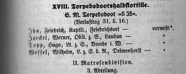 Das Torpedoboot S 35 (1914) sank in der Skagerrak-Schlacht durch Artilleriefeuer britischer Linienschiffe. 87 Männer starben,