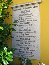 Zum Gedenken der Gefallenen u. Verm. 1914 1918 (Namen) Errichtet 1956 Bürgerm. Wittmann.