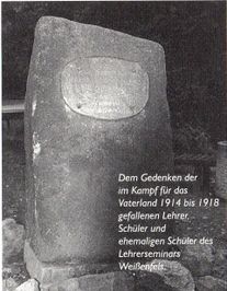 Straße, stand ein Gedenkstein, der eine Tafel mit den Namen ehemaliger Seminarangehöriger trug. Die Tafel