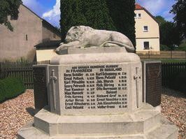 Im Dorfzentrum neben dem Schloss befindet sich in einer kleinen gepflegten Anlage das Denkmal. Es besteht aus einem liegenden Steinquader auf welchen sich die Figur eines schlafenden Löwen befindet. An der Vorderseite sind die Namen der Gefallenen des 1. Weltkriegs eingehauen. Beiderseits daneben finden sich wie Steine mit Namesplatten für die Opfer des 2. Weltkriegs.
