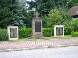 für die Gefallenen des 1. Weltkriegs. Beidseits je ein kleinerer Stein mit Namenstafeln für