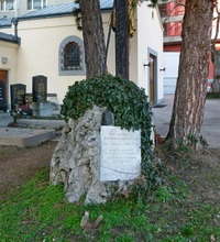 Naturstein mit Marmortafel beim Friedhofseingang (Stüber-Gunther-Gasse 1)