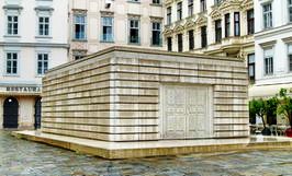 N 48°12'43.6'' / O 16°22'10.6'' Stahlbetonkonstruktion mit einer Grundfläche von 10 x 7 Metern und einer Höhe von 3,8 Metern. Die Außenflächen des Kubus sind durchmodelliert als nach außen gewendete Bibliothekswände. Auf dem Sockel vor den verschlossenen Flügeltüren ist ein Text in deutscher, englischer und hebräischer Sprache zu lesen und rund um das Mahnmal sind im Sockel die Namen jener Orte festgehalten an denen österreichische Juden von NS-Tätern ermordet wurden.