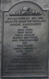 IM WELTKRIEGE 1914 / 1918 FIELEN FÜR HEIMAT UND VATERLAND UNSERE KAMERADEN (Namen) WIR WERDEN IHR ANDENKEN IMMER IN EHREN HALTEN FREIWILLIGE FEURWEHR ZEITZ