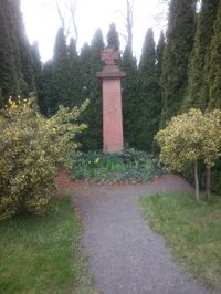 Auf dem Friedhof Reideburger Straße 7D steht eine Porphyrsäule mit Eisernem Kreuz als Abschluss für die Orte Zwebendorf und Droyßig, eingerahmt von einer Lebensbaumhecke an den Seiten und dahinter. Die Namen an der Vorderseite sind schon etwas verwittert.