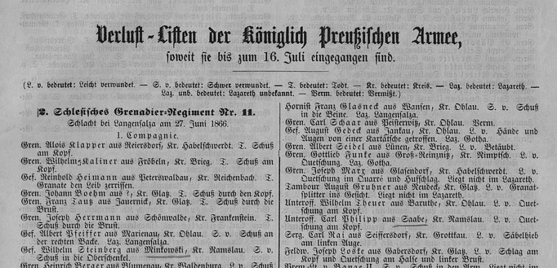 Verlustlisten der Königlich Preußischen Armee – 1866