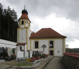 Eine Gedenktafel an der Kirche erinnert an die Opfer des 1. Weltkriegs. Am Zugang zur Friedhof wurde eine kleine offene Kapelle zum Gedenken an die Gefallenen und Vermissten beider Weltkriege errichtet. Ergänzende Angaben von Einzelgedenken auf Privatgräbern.