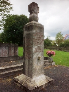 Säule, freistehend auf dem Friedhof mit Eisernem Kreuz obenauf