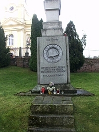 1914 1918 (Stahlhelm im Kranz) Unseren im Weltkrieg gefallenen Helden Die dankbare Gemeinde Evigilabunt. Dan.12