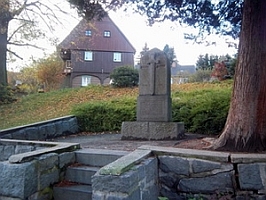 Im Ortzentrum neben dem Haus Nr. 4 steht ein heller Granitstein verziert mit einem Schwert, Widmung und Namen