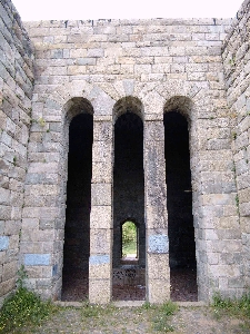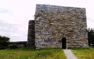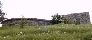 Deutsche Kriegsgräberstätte des 1. Weltkriegs auf einem Hügel über der Stadt, Festungsartige runde Anlage mit großer Eingangshalle