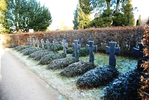 Auf dem Friedhof befindet sich eine Kriegsgräberstätte. Auf den Einzelgräbern steht jeweils ein Holzkreuz mit Namen. (zusätzlich drei unbekannte Soldaten)