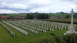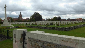 Dranouter (britische Kriegsgräberstätte), Gemeinde Heuvelland, Provinz West-Flandern, BelgienPLZ 8951 Britische Kriegsgräberstätte mit einem deutschen Grab